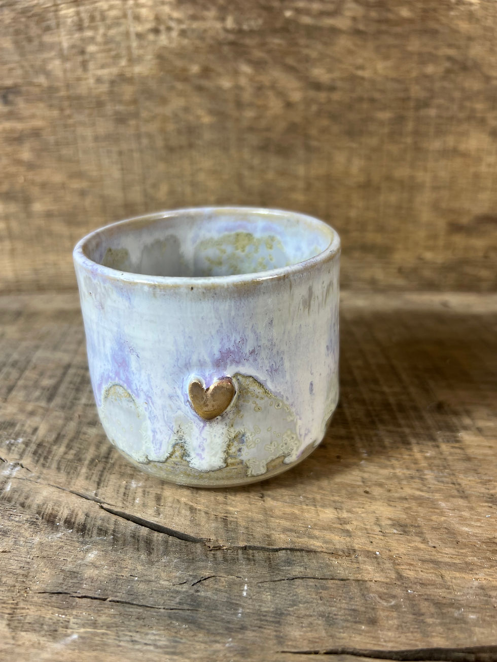 Petite Tasse en Grès – Émail Blanc et nuance de rose;Cœur Doré