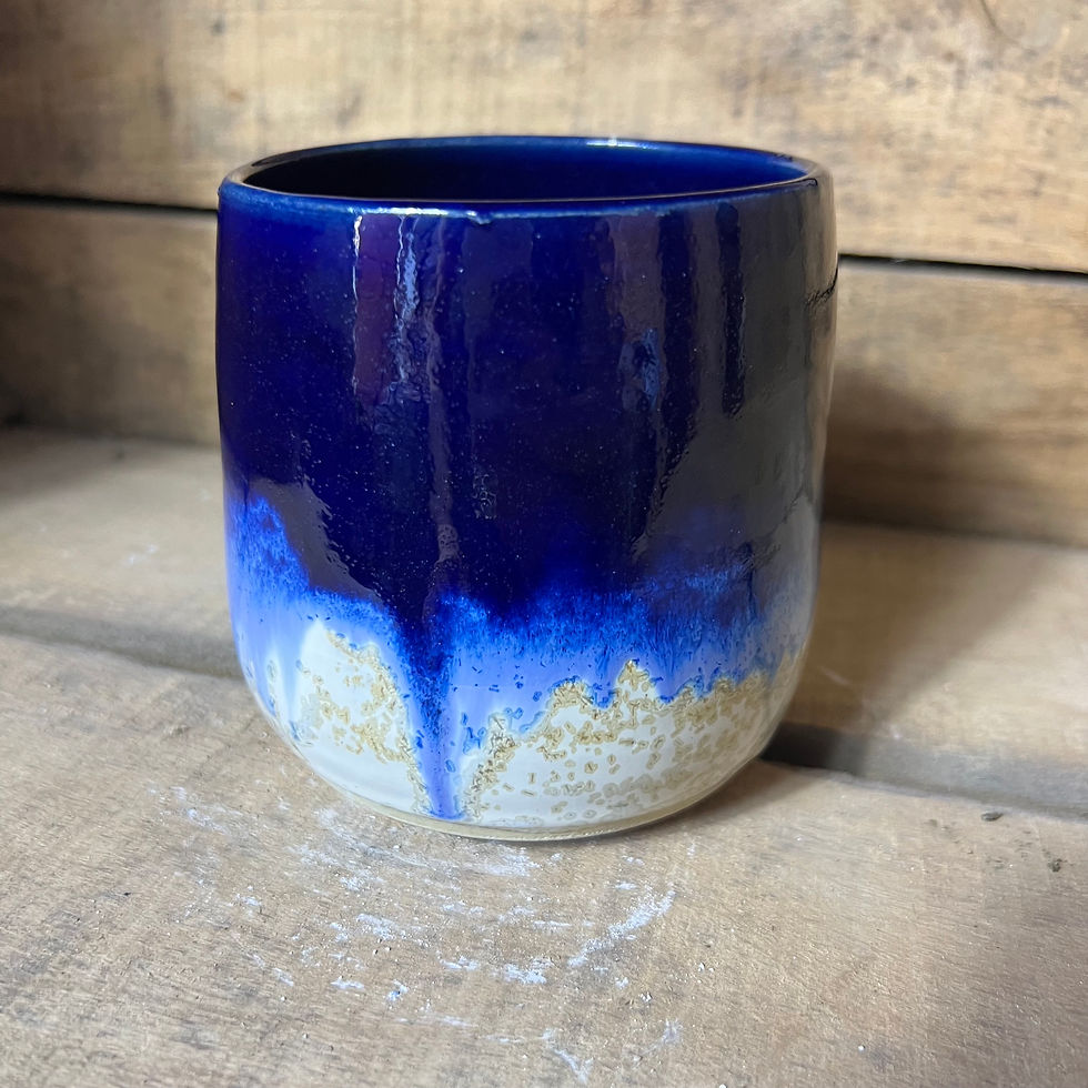 Tasse en grès émaillé bleu & gris – Gobelet artisanal sans anse fait main